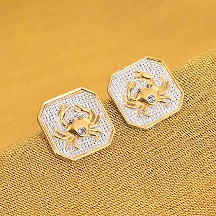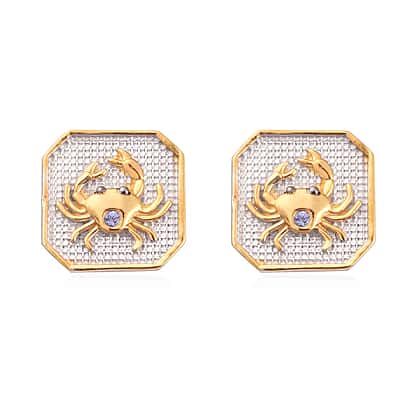 Tanzanite Cancer Zodiac Stud Earrings (with Push Back) in Platinum and Yellow Gold Overlay Sterling Silver