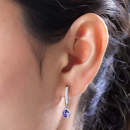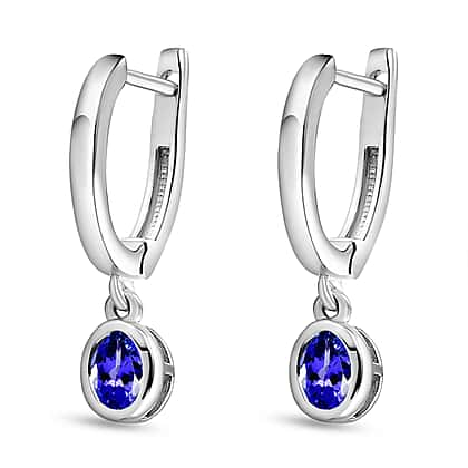 Solitaire Tanzanite Hoop Earrings in Platinum Plated Sterling Silver