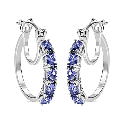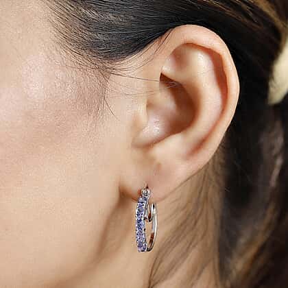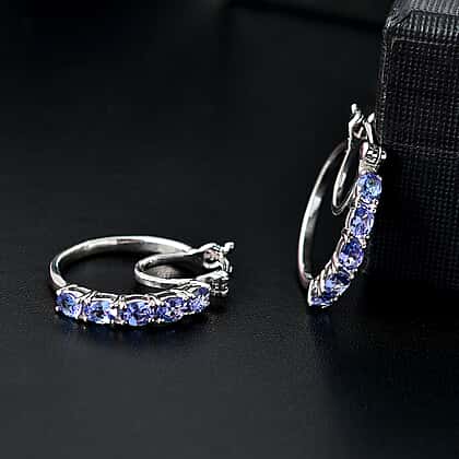 Tanzanite Full Hoop Earring With Clasp in Rhodium Overlay Sterling Silver 1.80 Ct.