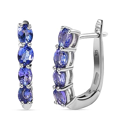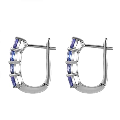 Tanzanite Hoop Earrings in Platinum Overlay Sterling Silver 1.34 Ct.
