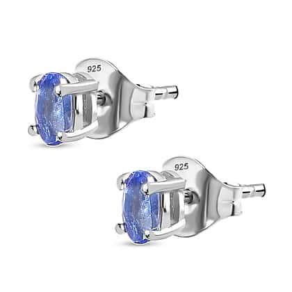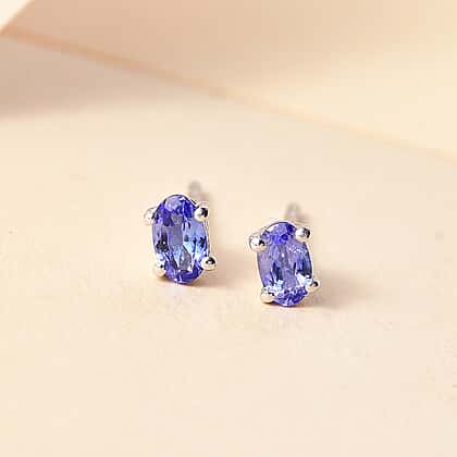 Tanzanite Solitaire Stud Earrings in Rhodium Overlay Sterling Silver