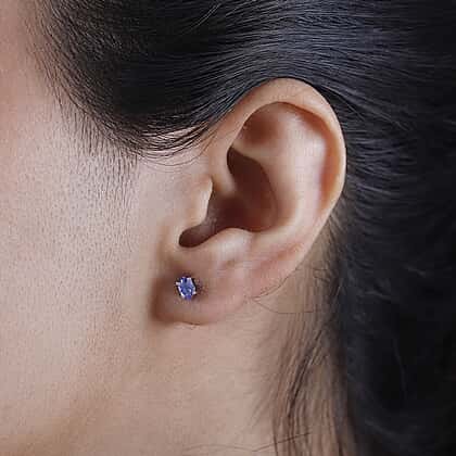 Tanzanite Solitaire Stud Earring With Push Back in Rhodium Overlay Sterling Silver