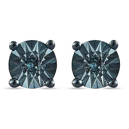 Teal Blue Diamond Stud Earrings (with Push Back) in 14K Gold Overlay Sterling Silver.