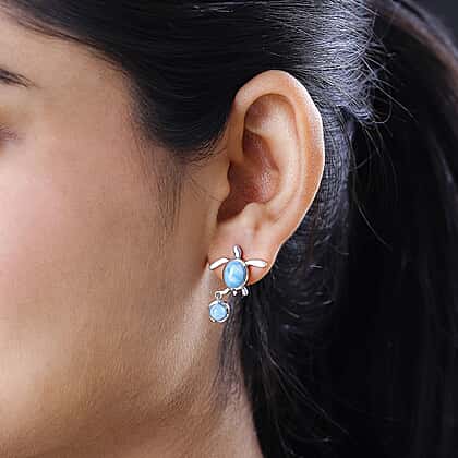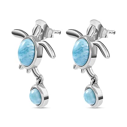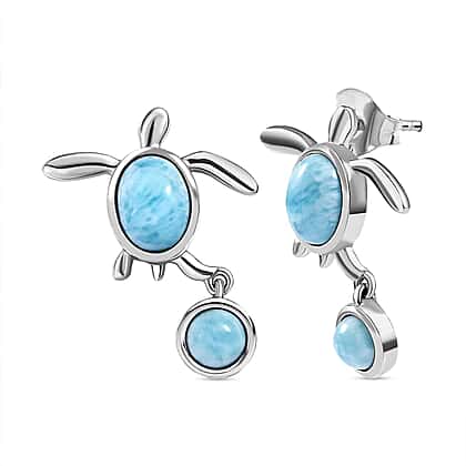 The Atlantis Collection- Larimar Turtle Earrings in Platinum Overlay Sterling Silver 4.12 Ct.