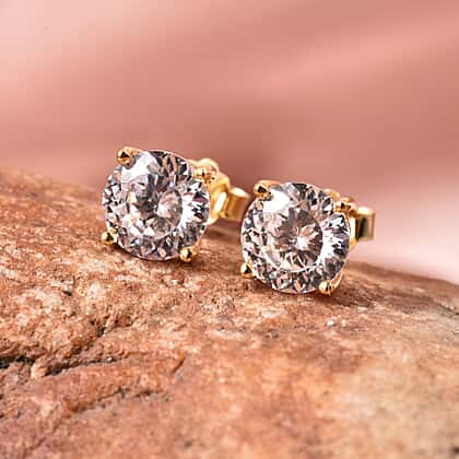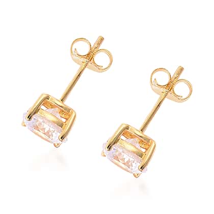 TJC Launch- AAAA Radiant Cut Simulated Diamond Stud Earrings (with Push Back) in Yellow Gold Overlay Sterling Silver