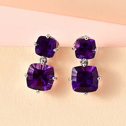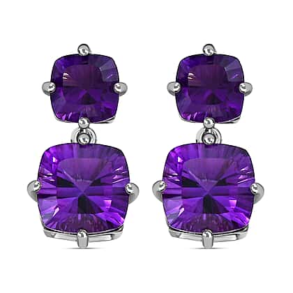 TJC Launch Concave Cut Amethyst Stud Earrings in Platinum Overlay Sterling Silver 6.31 Ct.