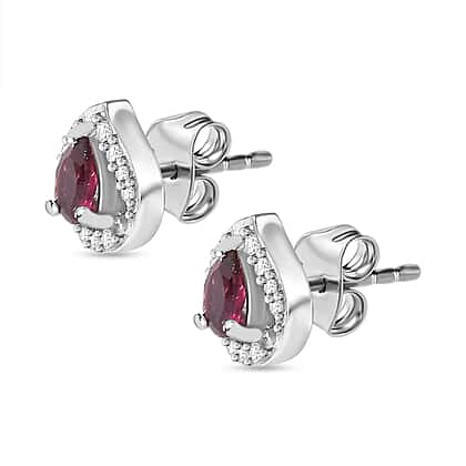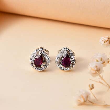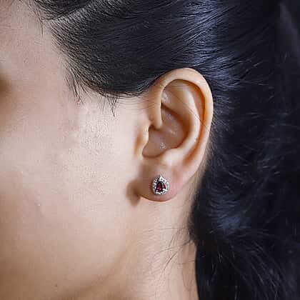 The deep, rich hue of a purple garnet makes these Natural Ember Garnet, White Zircon Solitaire Stud Push Post Earrings a romantic piece of jewellery. The classic design features the pear-shaped garnets set within a similar surrounding silver frame that is adorned with round White Zircons. The play of the garnet’s purple hue alongside the sparkle of the zircons and lustre of Rhodium Overlay on silver creates a luxurious piece of jewellery.