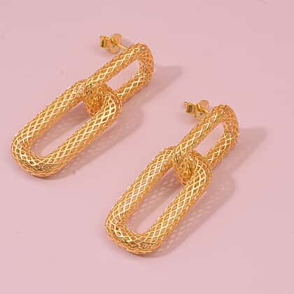 These chic earrings aren't your average chain-link earrings. Made with 925 white silver, these beauties are finished with a layer of yellow gold plating for added elegance. The mesh-like lattice design makes these earrings look effortlessly cool and adds a sense of artisanal allure. Ethically crafted, these pieces are perfect to make even to add texture to your outfit and elevate your look. Pair these chunky pieces with contrasting daintier adornments to create a balanced visual weight.