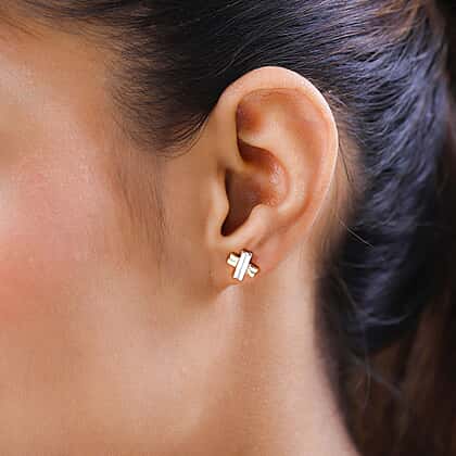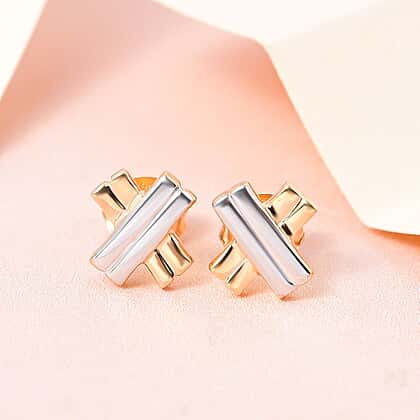 Tube Kiss X Earrings With Push Back in 18K Vermeil Yellow Gold Plated in Two Tone Sterling Silver