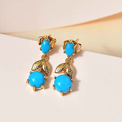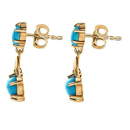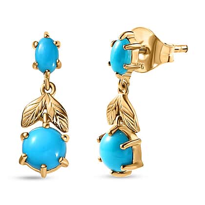 Tucson Special - Arizona Sleeping Beauty Turquoise Dangle Earrings in 18K Yellow Gold Vermeil Plated Sterling Silver 2.46 Ct.