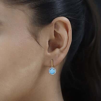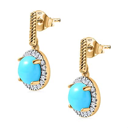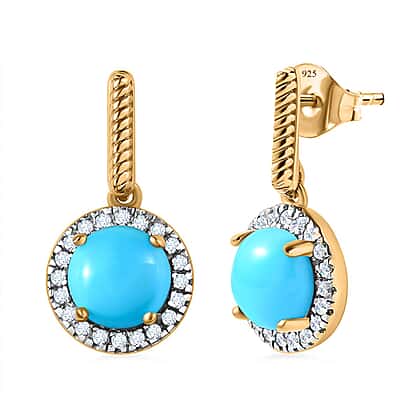 Tucson Special - Arizona Sleeping Beauty Turquoise & Natural Zircon Earrings in 18K Yellow Gold Vermeil Plated Sterling Silver 2.70 Ct.