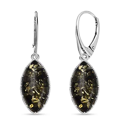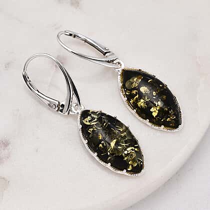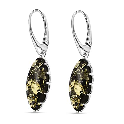 Tucson Special - Green Amber Lever Back Earrings in Sterling Silver