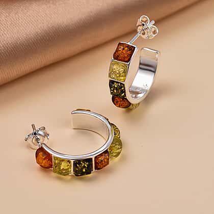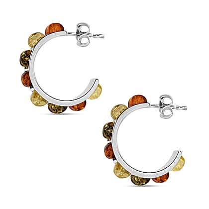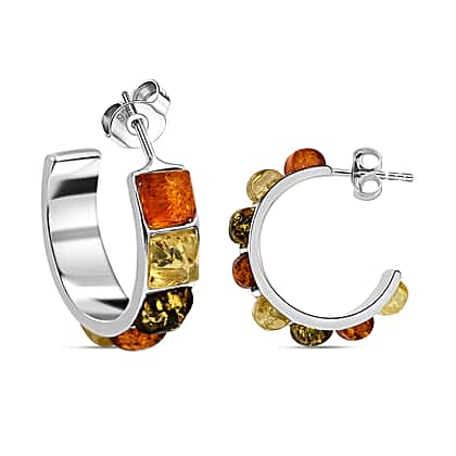 Tucson Special - Multi Colour Amber Half Hoop Earrings in Sterling Silver
