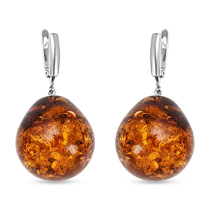 Tucson Special - Natural Baltic Amber Solitaire Drop Earrings in Sterling Silver