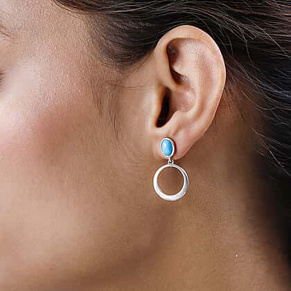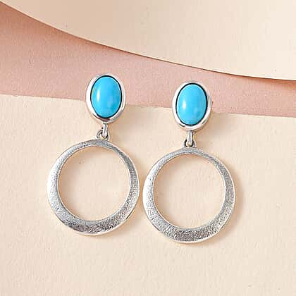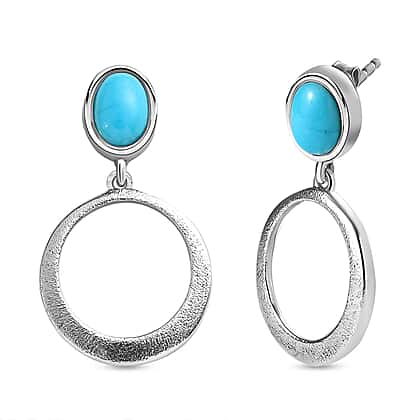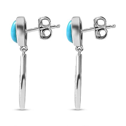 Tucson Special- Arizona Sleeping Beauty Turquoise Dangling Earrings (with Push Back) in Platinum Overlay Sterling Silver 1.33 Ct