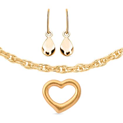 Valentine Special - Set of 9k Yellow Gold Drop Earrings, 24k Gold Heart Pendant & 9k Gold Prince of Wales Necklace
