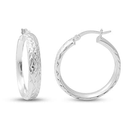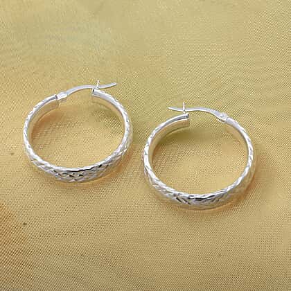 Criss-Cross Pattern Hoop Earrings in Sterling Silver