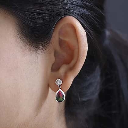 Elevate your elegance with these Watermelon Quartz Triplet and White Zircon Dangling Earrings, impeccably crafted in luminous Platinum Overlay Sterling Silver. Each earring sways delicately, showcasing the unique hues of the watermelon quartz, contrasted beautifully by the sparkle of white zircon. Secured by a reliable push post, they promise both style and stability. Whether it's a special occasion or a day-to-day adornment, these earrings offer unmatched sophistication.