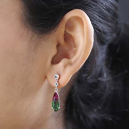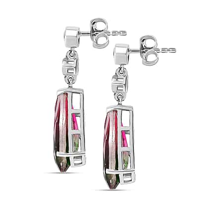 Watermelon Colour Tourmaline Quartz and Natural Zircon Dangle Earrings in Platinum Overlay Sterling Silver 6.00 Ct