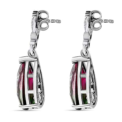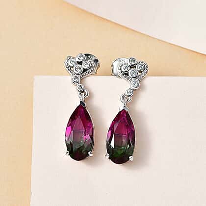 Watermelon Colour Tourmaline Quartz and Natural Zircon Earrings in Platinum Overlay Sterling Silver 6.56 Ct
