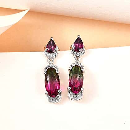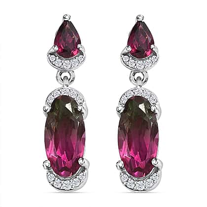 Watermelon Colour Tourmaline Quartz Rhodolite Garnet and Natural Zircon Earrings in Platinum Overlay Sterling Silver 5.42 Ct