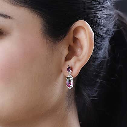 Behold the enchanting allure of Bi-Colour Tourmaline Quartz combined with the fiery sparkle of Rhodolite Garnet and Natural Zircon. These drop earrings, meticulously crafted, reflect a symphony of colours, capturing light and attention with every tilt. Elevate any ensemble, making a sophisticated statement with these mesmerising gems, encapsulating elegance and artistry in every facet.