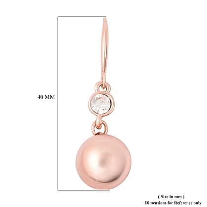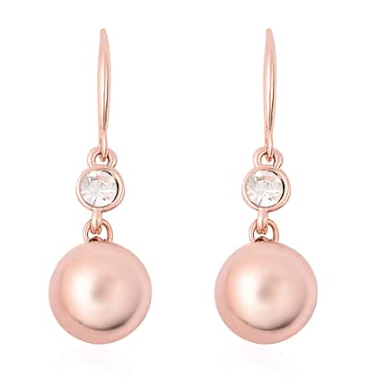 Ball Drop Hook Earrings with White Crystal in Rose Gold Tone