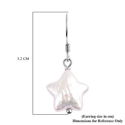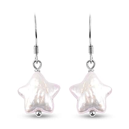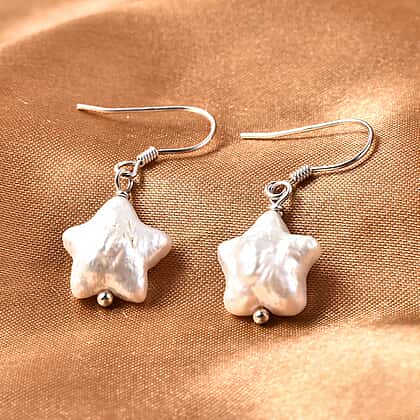 White Baroque Pearl Star Hook Earrings in Rhodium Overlay Sterling Silver