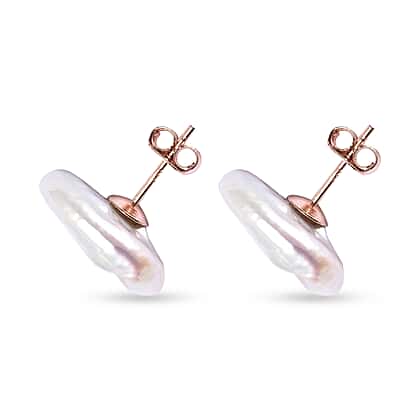 White Baroque Pearl Stud Earrings (with Push Back) in Rose Gold Overlay Sterling Silver