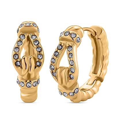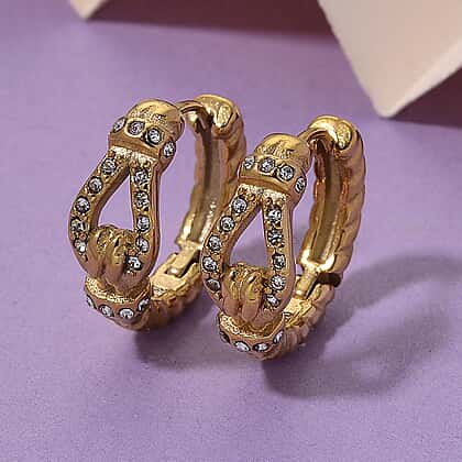 White Crystal Earring with Hoop in Yellow Gold Plated