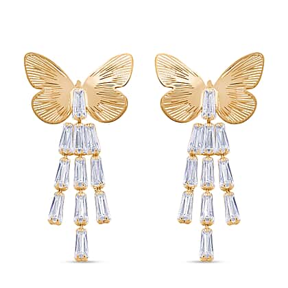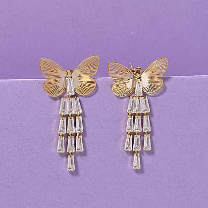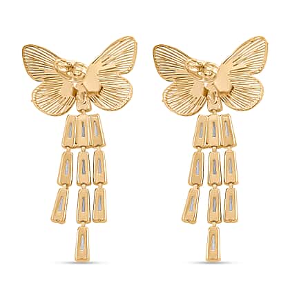 White Cubic Zirconia Dangling Butterfly Earring with Push Back in Yellow Gold Plated 1.00 Ct.