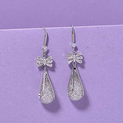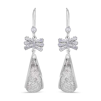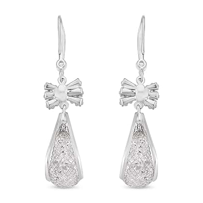 White Cubic Zirconia Dangling Earring with Hook in White Gold Plated 30.00 Ct.