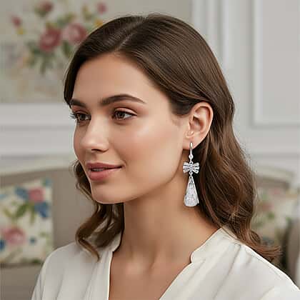 Whether you are looking for accessories for after-dark accessorising or want to wear one for a date night, these white cubic zirconia dangling earrings make for the perfect cut. Crafted in pure white brass, these earrings feature a bow-like detail at the top adorned with white zircons. These elements drop to form teardrop-shaped textured drops. These drops are intricately adorned with cubic zirconia which further helps to add oodles of shine and movement to your look. These dangling earrings come with a hook closure that makes it easy to put on and take off.