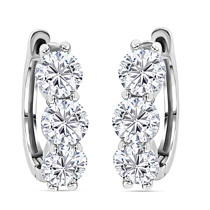 White Cubic Zirconia 3-Stone Hoop Earrings in Rhodium Overlay Sterling Silver 5.55 ct.