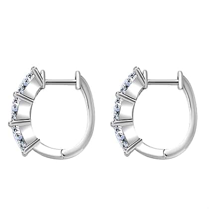 White Cubic Zirconia Hoop Earrings in Rhodium Overlay Sterling Silver 5.55 Ct.