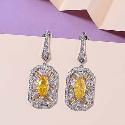 White Cubic Zirconia & Yellow Cubic Zirconia Earring with Push Back