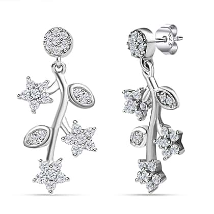 White Diamond Solitaire Stud Push Post Earring in Platinum Overlay Sterling Silver 0.49 ct 0.506 Ct.