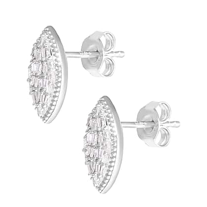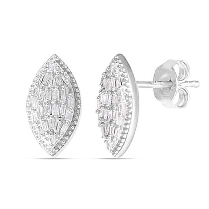 White Diamond Marquise Stud Earring in Platinum Overlay Sterling Silver 0.26 ct 0.260 Ct.