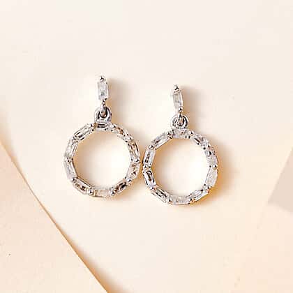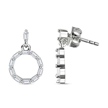 White Diamond Fancy Earring ( With Push Back) in Platinum Overlay Sterling Silver 0.50 ct