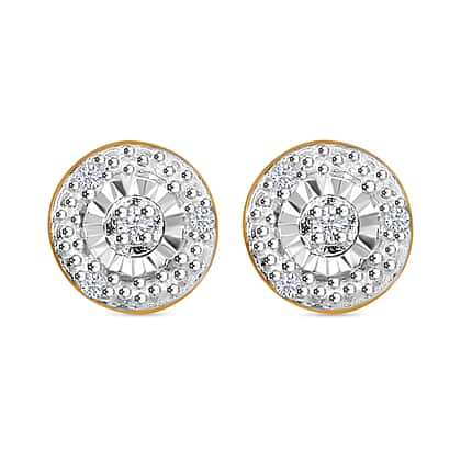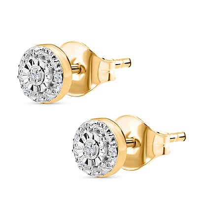 White Diamond Solitaire Stud Earring with Push Back in 18K Vermeil Yellow Gold Plated Sterling Silver