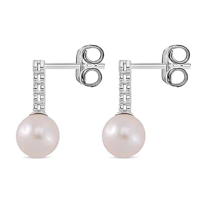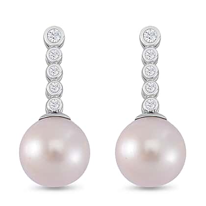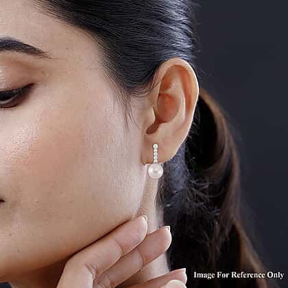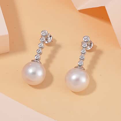 A treasure to truly cherish and keep, these White Edison Pearl and Natural Zircon Dangle Earrings are fashioned from Rhodium Overlay Sterling Silver. These earrings have big-sized Edison Pearls that illuminate your jawline with their soft glow. The decorated bail brings the sparkle of zircon to your ears.
