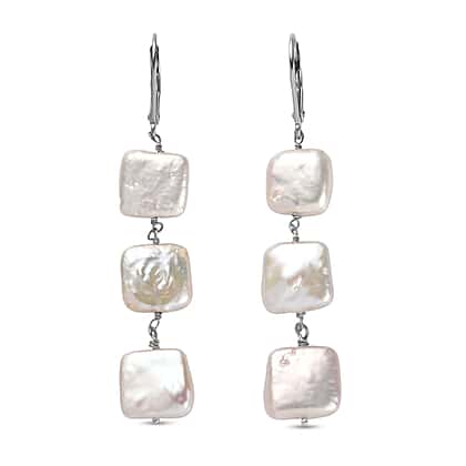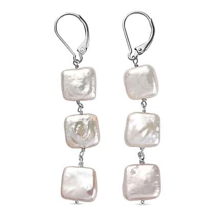 White Fresh Water Pearl Earring in Rhodium Overlay Sterling Silver 25.00 Ct.