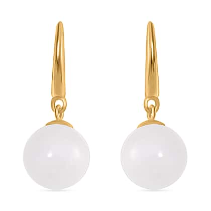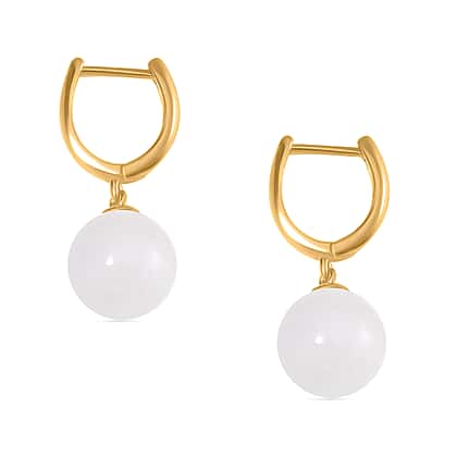 White Jade Drop Earring with Clasp in 18K Vermeil Yellow Gold Plated Sterling Silver 21.00 Ct.