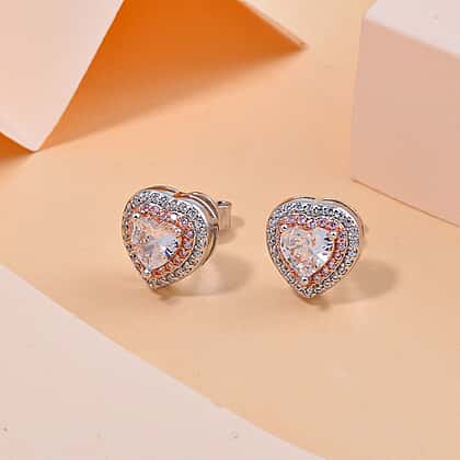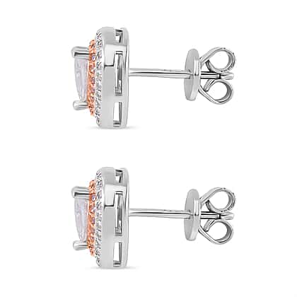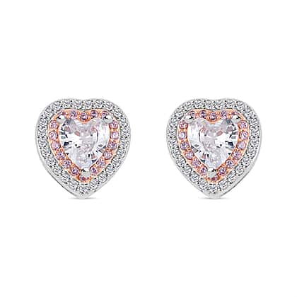 White Cubic Zirconia, Pink Cubic Zirconia Heart Earrings in Sterling Silver 2.370 Ct.
