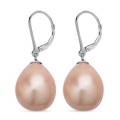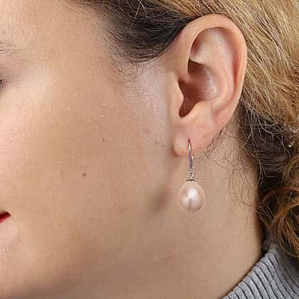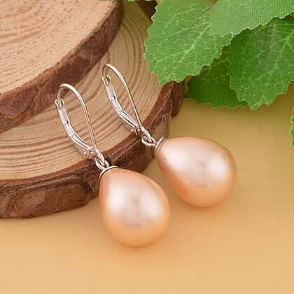 Champagne Shell Pearl Solitaire Drop Earrings in Sterling Silver with Rhodium Plating