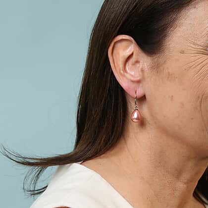 Pink Shell Pearl Solitaire Drop Earrings in Sterling Silver with Rhodium Plating