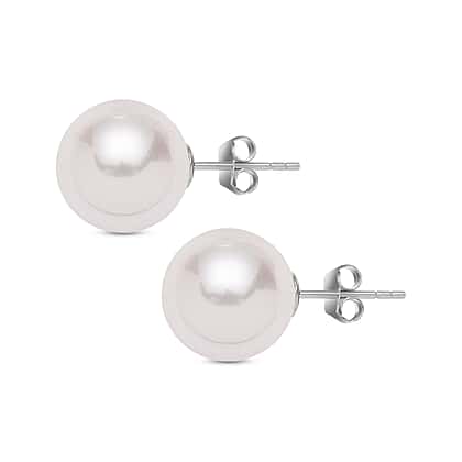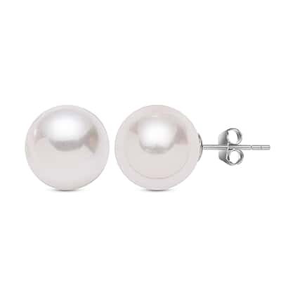 White Shell Pearl Stud Earrings in Rhodium Plated Sterling Silver