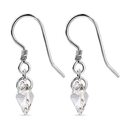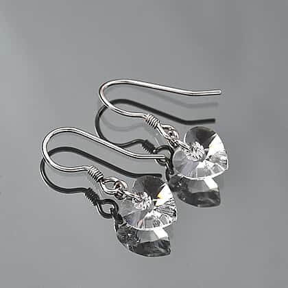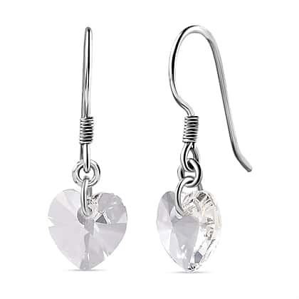 White Swarovski Crystal J Hoop Earring in Rhodium Overlay Sterling Silver 5.40 Ct.