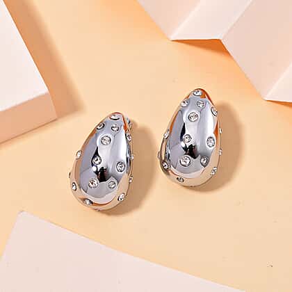 White Swarovski Crystal Push Back Earring in Silver Tone