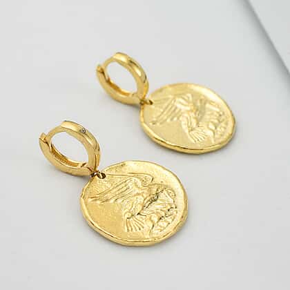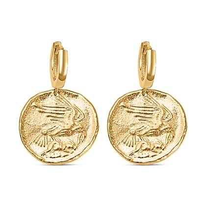 Yellow Gold Plated Sterling Silver Roman Coin Earrings, Silver Wt. 9.2 Gms
